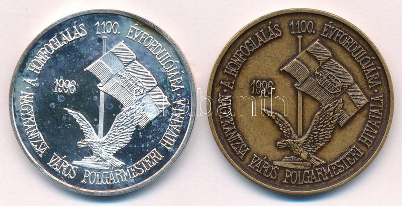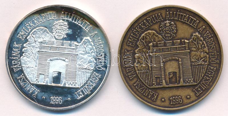 Bognár György (1944-) 1996. "A Honfoglalás 1100. évfordulójára - Nagykanizsa Város Polgármesteri Hivatala / Kanizsa várának emlékkapuja állÃttatta a VárosvédÅ‘ Egyesület" ezüstözött fém és bronz emlékérem pár (42,5mm) T:UNC,AU (egyik eredetileg PP) patina