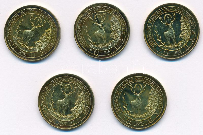 Leírás: DN "Országos Vadászati Védegylet - 1881" egyoldalas, vert fém emlékzseton (23mm) (5db) T:UNC patina