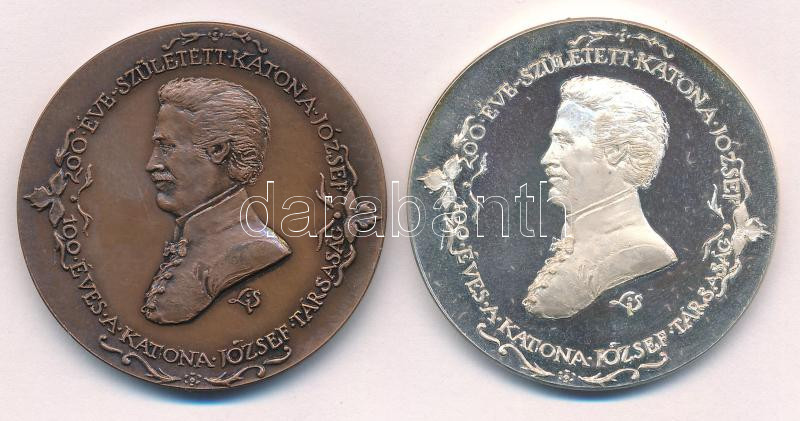 Lapis András (1942-) 1991. "200 éve született Katona József - 100 éves a Katona József Társaság / 25 éves a szervezett éremgyűjtés Kecskeméten 1991" Ag és bronz emlékérem pár (36,02g/0.835/42,5mm) T:UNC,AU (eredetileg PP)