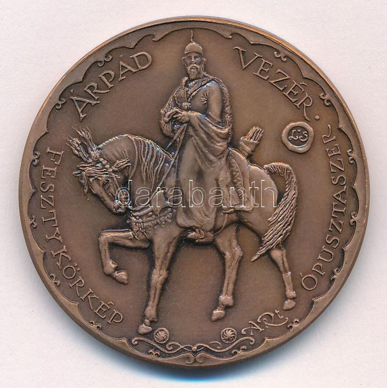 Leírás: Lapis András (1942-) ~1990. "Árpád vezér - Feszty körkép - Ópusztaszer / Verecke útján" bronz emlékérem (42,5mm) T:UNC,AU