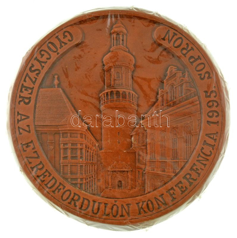 Leírás: Schalkammer Terézia 1995. "Gyógyszer az Ezredfordulón Konferencia 1995. Sopron" kerámia plakett, eredeti csomagolásban (~116-117mm) T:UNC