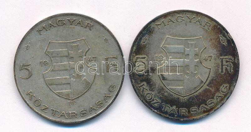 Leírás: 1947. 5Ft Ag "Kossuth" (2x) T:VF patina Adamo F8.1