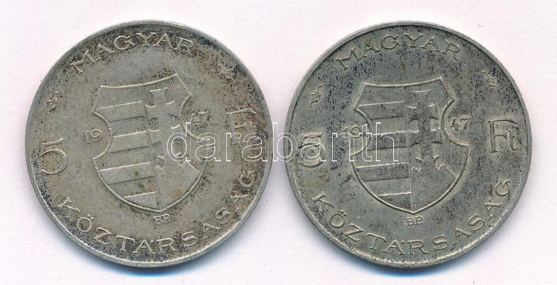 Leírás: 1947. 5Ft Ag "Kossuth" (2x) T:XF,VF patina, karc