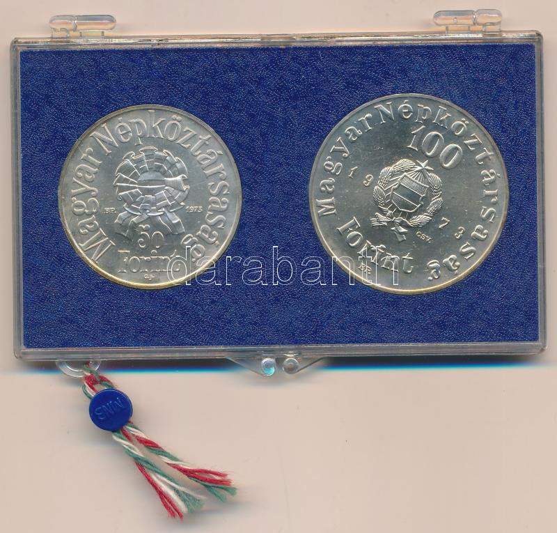 Leírás: 1973. 50Ft Ag + 100Ft Ag "Petőfi" érmepár eredeti, "MNB" plasztiktokban T:BU patina Adamo EM41, EM42