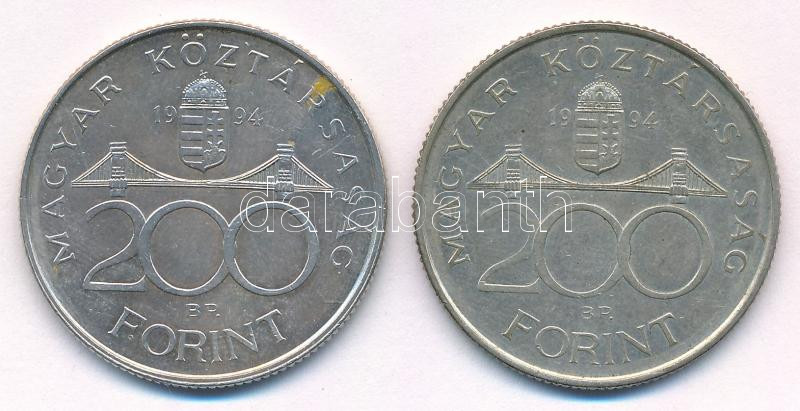 Leírás: 1994. 200Ft Ag "Deák" (2x) T:AU,XF