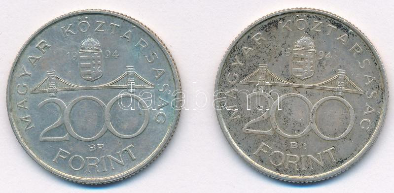Leírás: 1994. 200Ft Ag "Deák" (2x) T:XF patina