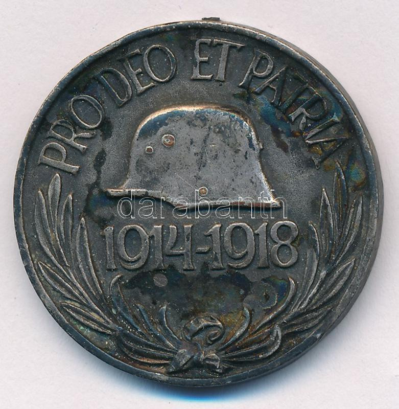 Leírás: 1929. "Magyar Háborús Emlékérem kardokkal, sisakkal" ezüstözött, peremén jelzett bronz kitüntetés, fül és mellszalag nélkül T:VF patina NMK 418.