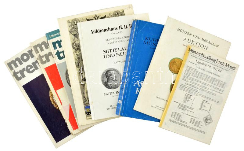 8db-os német nyelvű numizmatikai folyóirat és aukciós katalógus tétel, közte 1997. "Kunsthaus Zacke - Papiergeld & Notgeld 2. Sonderauktion Sammlung Bázlik, Budapest" a Dr. Bázlik-féle gyűjtemény árverési katalógusa + 3 klf Money Trend lapszám stb. Használt, jó állapotban.