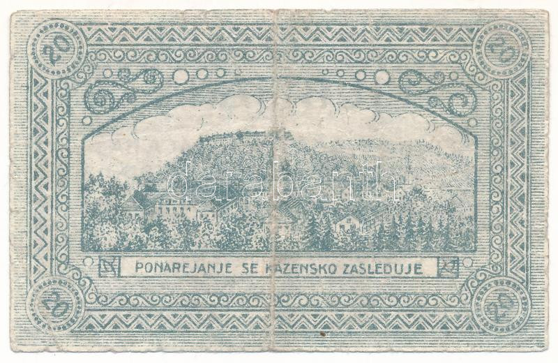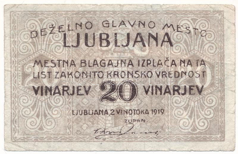 Leírás: Jugoszlávia / Ljubljana 1919. 20v szükségpénz T:F,VG kis szakadás, tű ly.