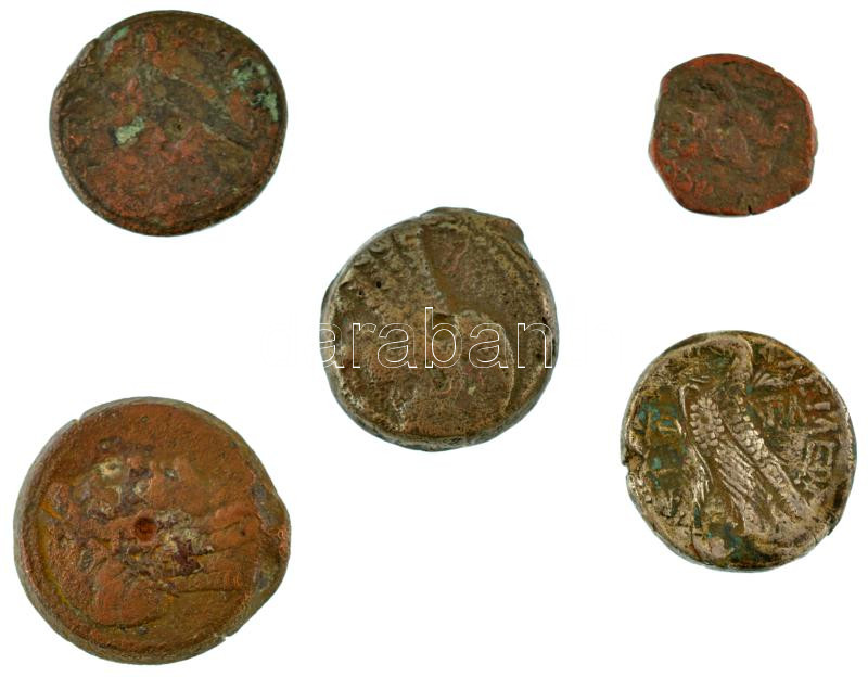 Ptolemaida Egyiptom Kr. e. III. század 5db-os bronz érmetétel, közte 2db (utólag?) ezüstözött érme T:F,VG Ptolemaic Egypt 3rd Century B.C. 5pcs bronze coin lot, within 2pcs silvered coin C:F,VG