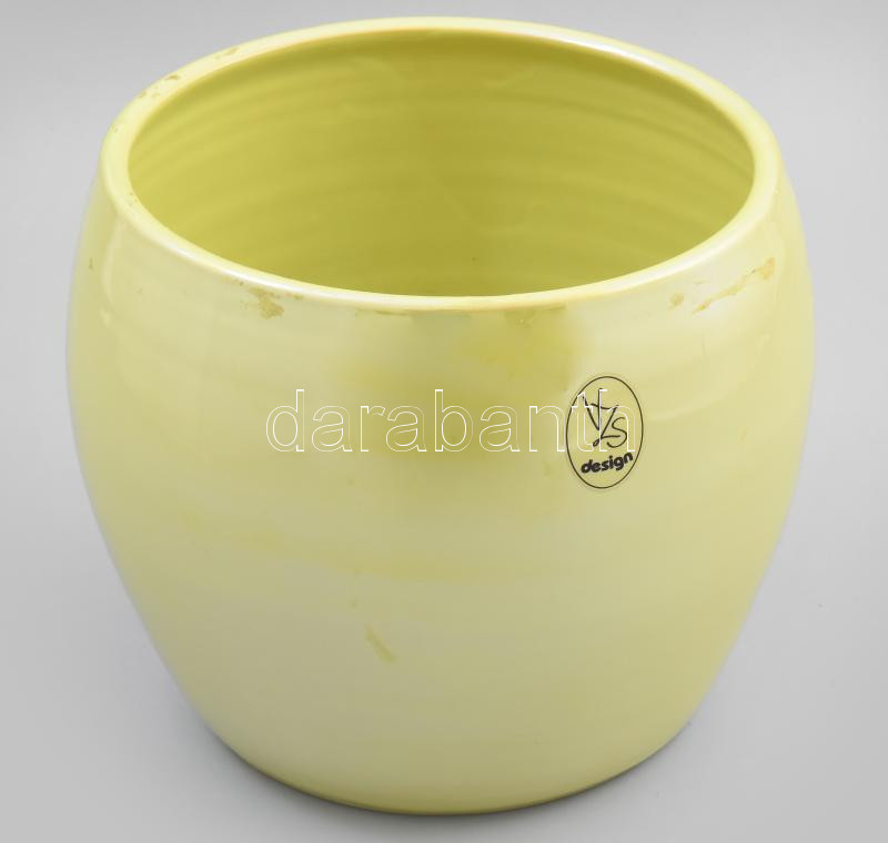 Leírás: Élénkzöld kerámia kaspó, jelzés nélkül, hibátlan, d: 23 cm, m: 19 cm