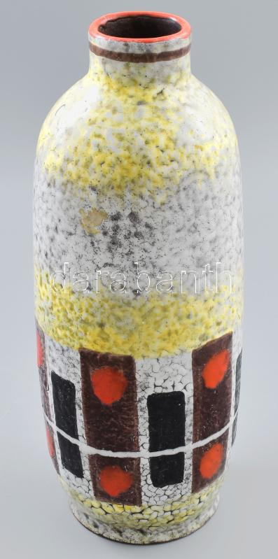 Leírás: Majoros János: Váza, mázas kerámia, kézzel festett jelzett, hibátlan 32 cm