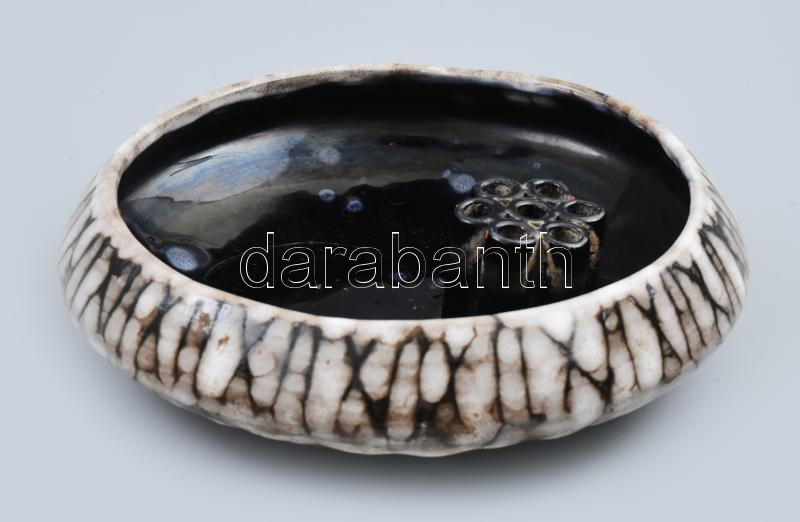 Leírás: Retro iparművész ikebana tál, jelzés nélkül, hibátlan, d: 19,5 cm