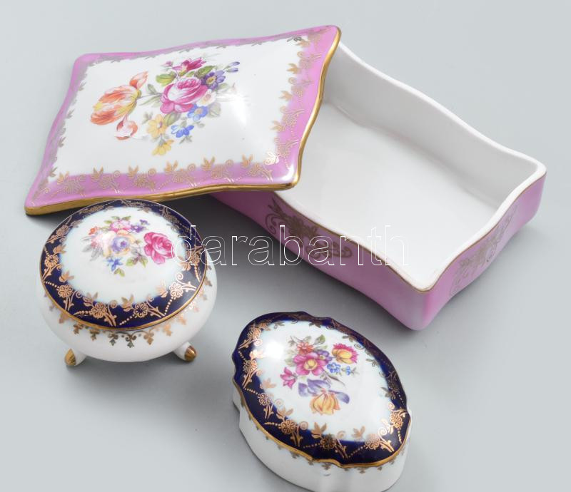 Leírás: 3 db porcelán dobozka 13 cm-ig