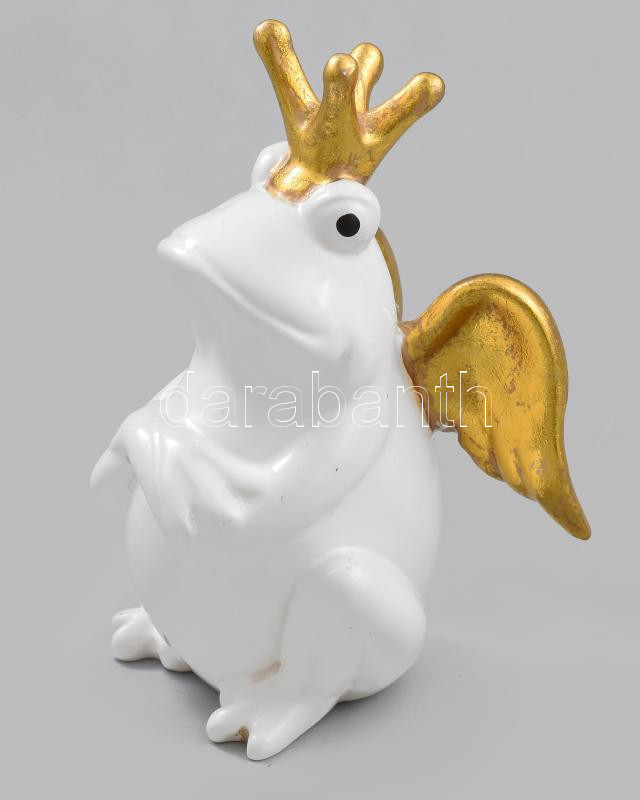 Leírás: Békakirály. Fehér- és arany mázas figura, sorszámozott, minimális kopottsággal, m: 14,5 cm