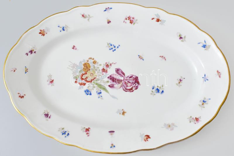 Leírás: Fischer Emil pecsenyés tál. Kézzel festett, kézzel festett jelzéssel, kis kopással, 45x30 cm