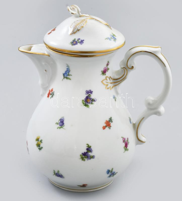 Leírás: Hüttl Tivadar Aquincum porcelán kancsó. Kézzel festett, jelzett, minimális lepattanással a rózsán 21 cm