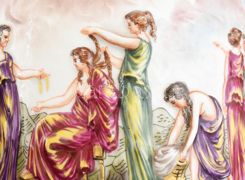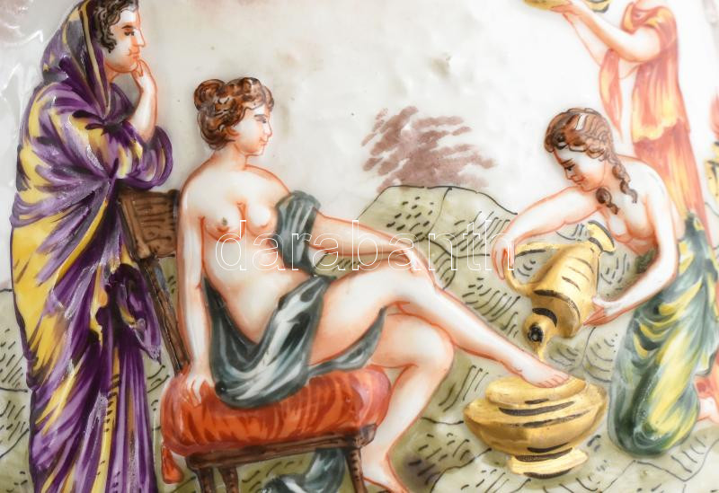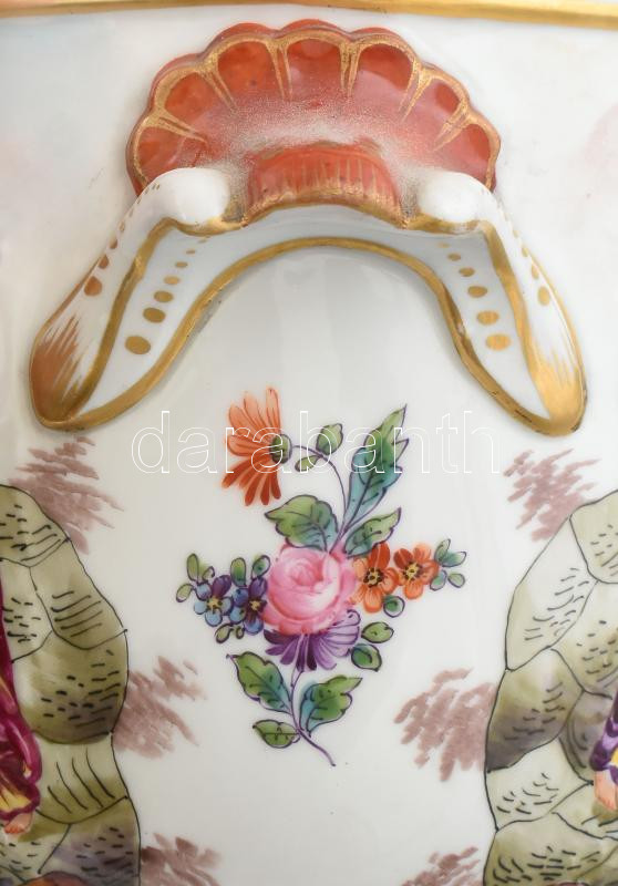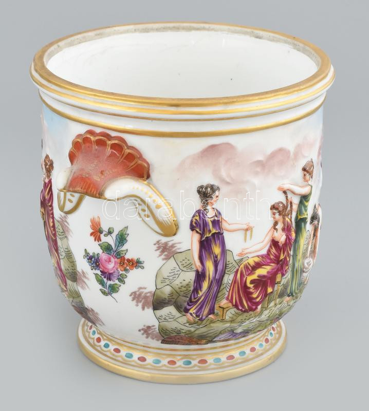 Leírás: Régi Capodimonte kaspó, jelzett, kopásokkal, m: 14,5cm, d: 19 cm
