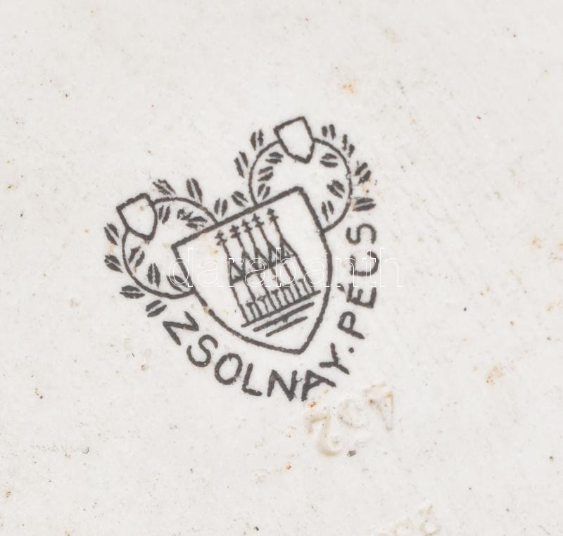 Leírás: Zsolnay "Nyári fontos." feliratos porcelántábla, jelzett, kopással, 8x13 cm
