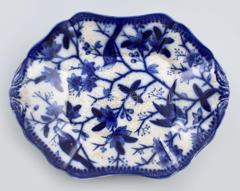Leírás: cca 1850 Villeroy & Boch "Fasan" mintás kínáló. Máz alatti kékkel festett, jelzés nélkül, mázrepedéssel, folttal, alján sérüléssel, 32x24 cm