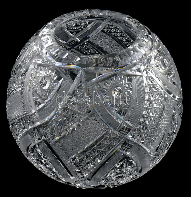 Leírás: Ólomkristály váza, jelzés nélkül, gömb alakú, gazdagon csiszolt mintával, kis kopással, m: 17,5 cm