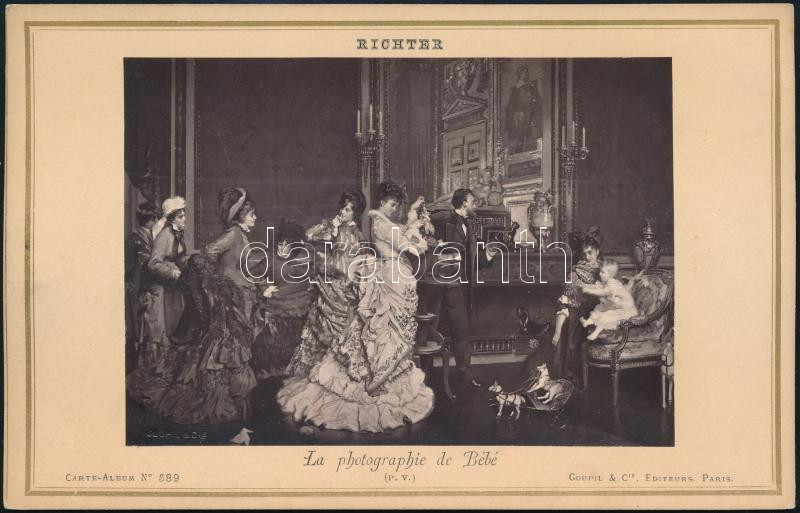 Édouard Frédéric Wilhelm Richter (1844-1913) La photographie de bébé c. festménye után készült keményhátú fotónyomat reprodukció, Goupil & cié kiadása, 1800 körül, szárazbélyegzővel jelzett, 10,55x16,5 cm.
