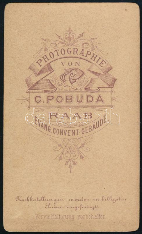 cca 1880 Férfiportré, keményhátú fotó Pobuda Károly győri műterméből, ... https://www.darabanth.com/hu/455-Gyorsarveres/455.0/Fotomuveszet/Foto~2000034/cca-1880-Ferfiportre-kemenyhatu-foto-Pobuda-Karoly-gyori-mutermebol-10-5x6-5-cm~II3035538