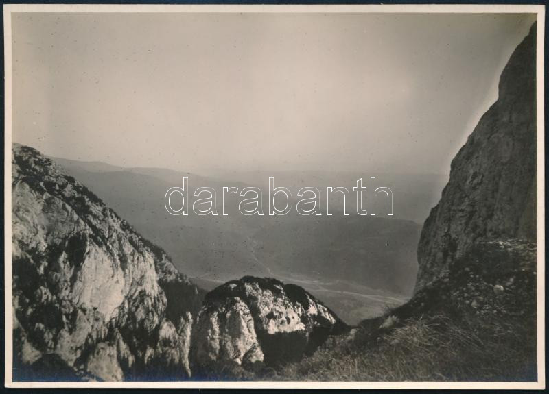 cca 1910 Brassó környéki hegyek, kilátás a Kis- és Nagy-Királykő közötti nyeregről, Erdélyi Mór (1866-1934) felvétele, hátulján feliratozva, 11,5×16 cm / Brasov (Kronstadt), mountains, vintage photo by Mór Erdélyi, 16x11,5 cm