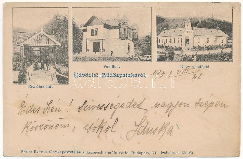 1902 Büdöspataka-fürdő, Bizusa-Bai; Erzsébet kút, Pavilon, Nagy vendég... https://www.darabanth.com/hu/455-Gyorsarveres/455.0/Kepeslapok/Erdely~1500006/1902-Budospataka-furdo-Bizusa-Bai-Erzsebet-kut-Pavilon-Nagy-vendeglo-etterem-Szabo-fiverek~II3039162