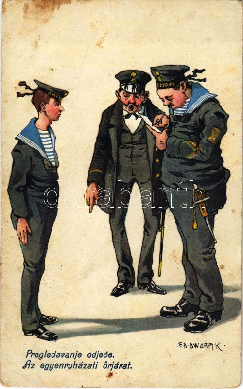 Leírás: Az egyenruházati őrjárat / Pregledavanje odjece / K.u.K. Kriegsmarine Matrosen / Austro-Hungarian Navy mariner humor. C. Fano Pola 11. 1914/15. s: Ed. Dworak (fl)