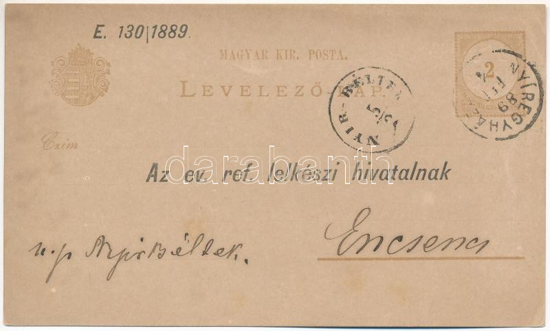 Leírás: 1889 (Vorläufer!!!) Nyíregyháza, Lukács Ödön esperesi körlevele (EK)