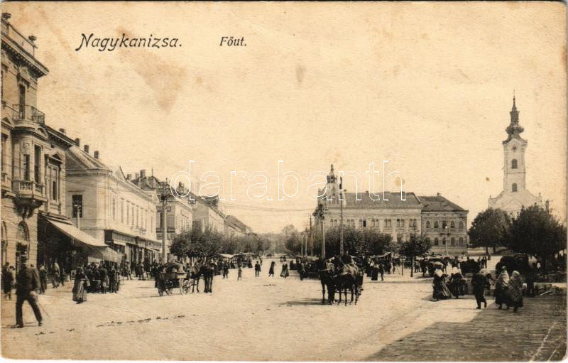 Nagykanizsa, Fő út, piac, templom. Schwarz és Tauber kiadása (fl) https://www.darabanth.com/hu/455-Gyorsarveres/455.0/Kepeslapok/Magyarorszag~1500005/Nagykanizsa-Fo-ut-piac-templom-Schwarz-es-Tauber-kiadasa-fl~II3032700
