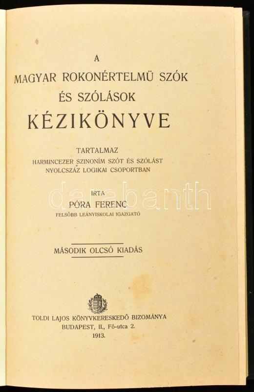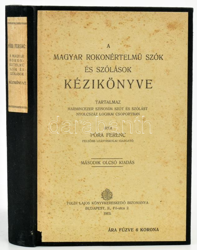Póra Ferenc: A magyar rokonértelmű szók és szólások kézikönyve. Bp.,19... https://www.darabanth.com/hu/455-Gyorsarveres/455.0/Konyvek/Konyvek-Egyeb-ritkasagok~2000032/Pora-Ferenc-A-magyar-rokonertelmu-szok-es-szolasok-kezikonyve-Bp-1913-Athenaeum-2-kiadas~II3036157