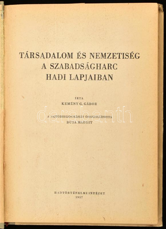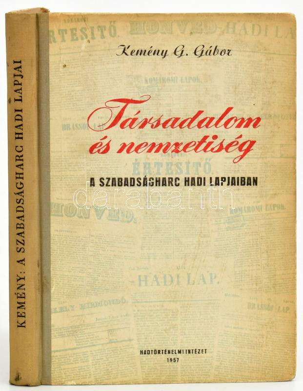 Kemény G. Gábor: Társadalom és nemzetiség a szabadságharc hadi lapjaib... https://www.darabanth.com/hu/455-Gyorsarveres/455.0/Konyvek/Konyvek-Tortenelem~2000017/Kemeny-G-Gabor-Tarsadalom-es-nemzetiseg-a-szabadsagharc-hadi-lapjaiban-Dedikalt-Bp-1957~II3031597