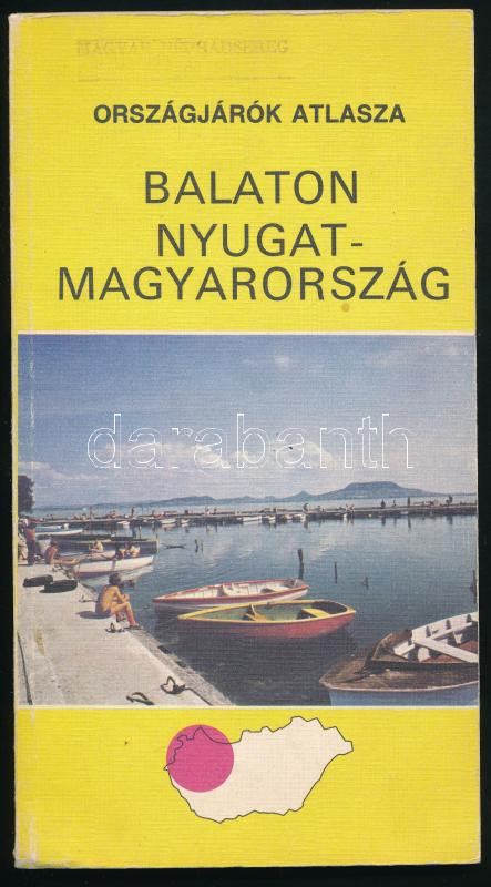 Balaton Nyugat-Magyarország. Országjárók atlasza. Bp., 1984/1985, Kartográfiai Vállalat. Negyedik kiadás. Kiadói papírkötés, a borítón némi kopással, a gerincen kis sérüléssel, több kijáró lappal, "Magyar Néphadsereg" bélyegzésekkel.
