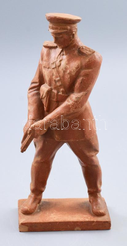 Leírás: Szovjet katona. Engóbozott kerámia szobor, jelzés nélkül, kopással, pattogzással, m: 26,5 cm