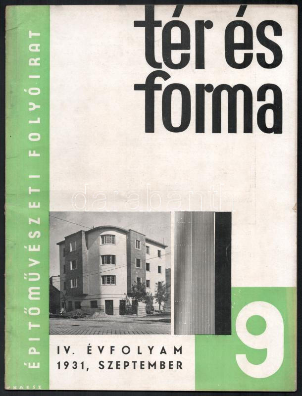 1931 A Tér és Forma építőművészeti folyóirat IV. évfolyamának 9. száma https://www.darabanth.com/hu/455-Gyorsarveres/455.0/Mutargy-papirregiseg-egyeb/Nyomtatvanyok~2000012/1931-A-Ter-es-Forma-epitomuveszeti-folyoirat-IV-evfolyamanak-9-szama~II3033207