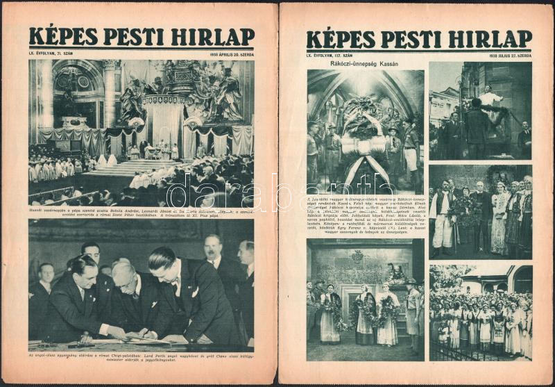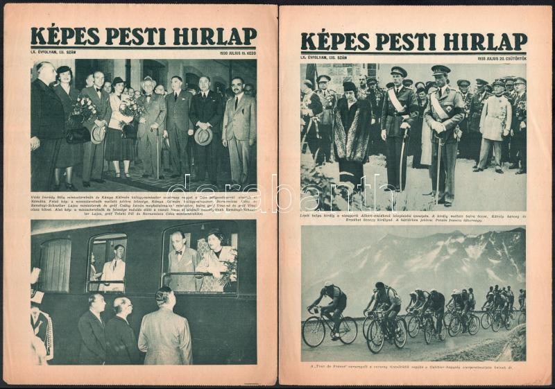 Leírás: 1938 Képes Pesti Hírlap 5 db száma, a címlapokon Horthy Miklós kormányzó, Imrédy Béla miniszterelnök, stb.
