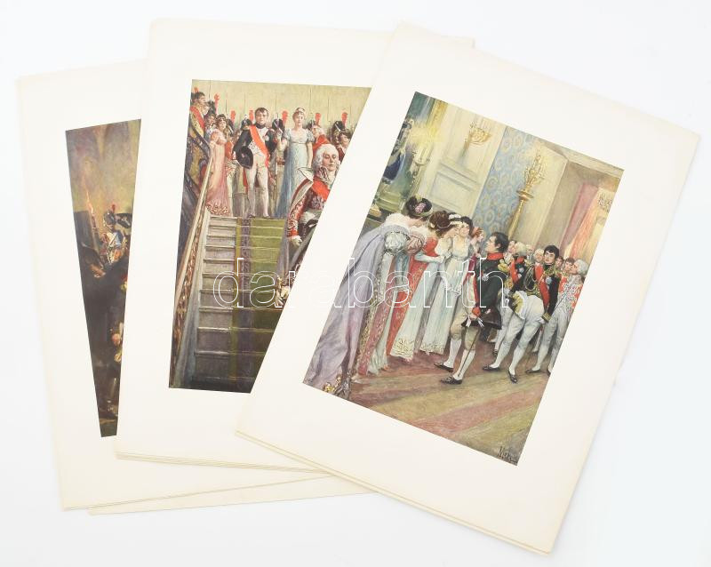cca 1912 I. Napóleon életét bemutató képek, 12 db szÃnes nyomat. In: Napoleon album. I. Napoleon élete és kora, Ãrók tanulmányaiban, festÅ‘művészek festményeiben és rajzaiban megvilágÃtva. Lapméret: 29,5x21,5 cm
