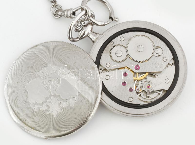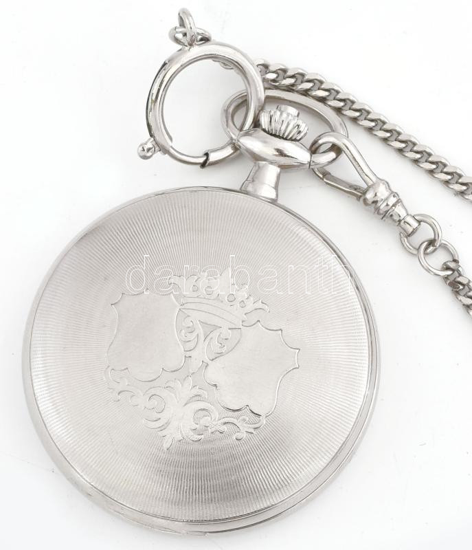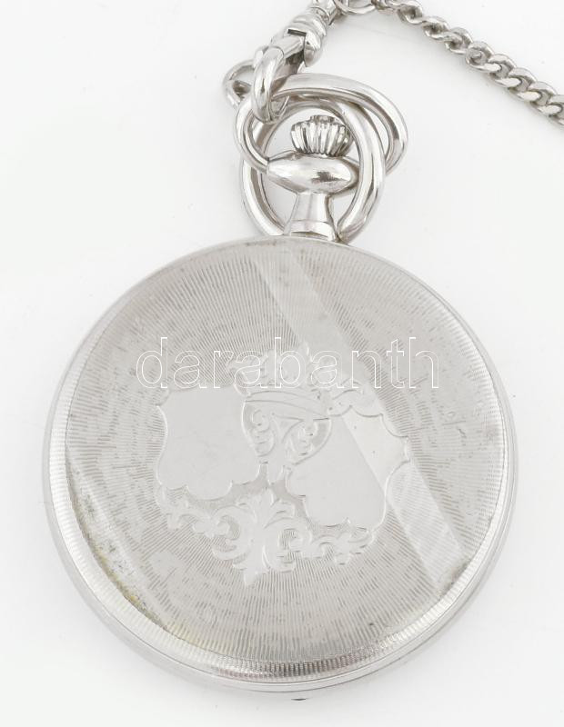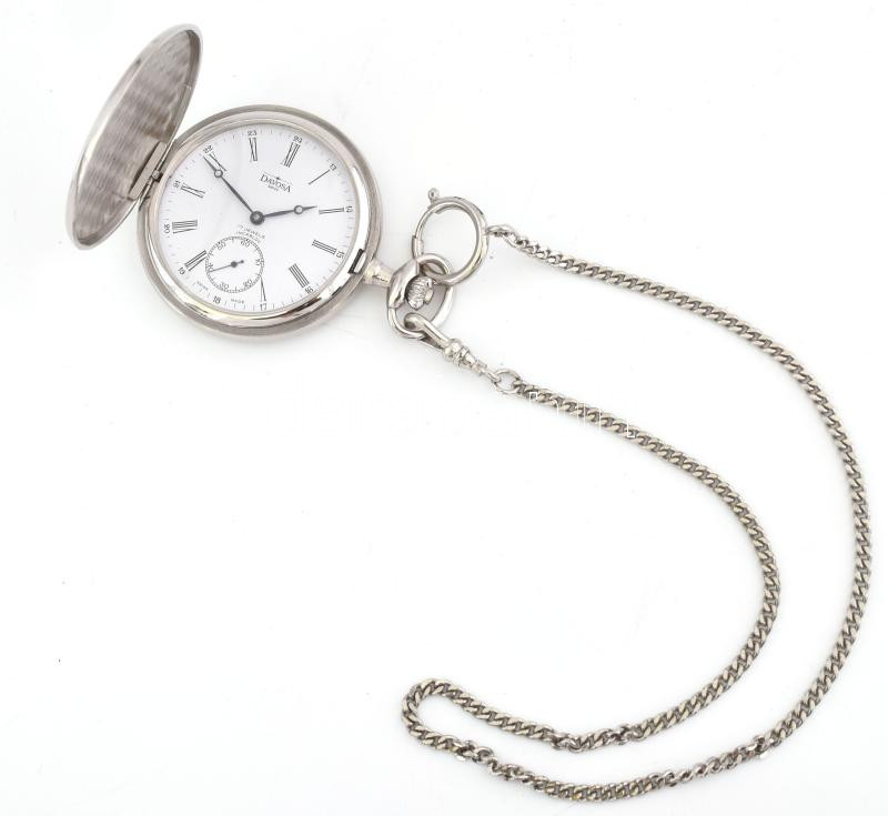 Leírás: Davosa svájci mechanikus zsebóra, működő, szép állapotban, fém tokkal, fém lánccal d: 45 mm