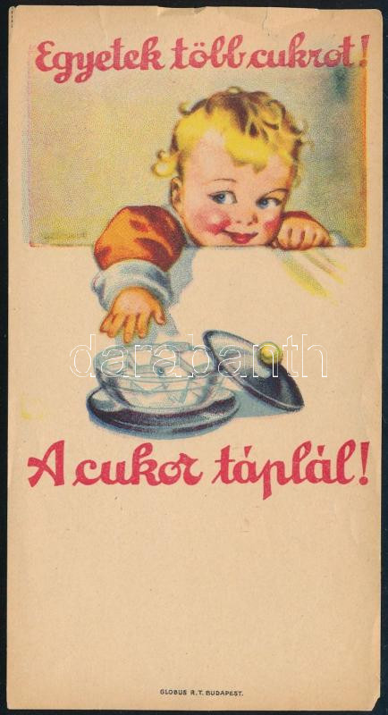 cca 1930 "Egyetek több cukrot! A cukor táplál!" számolócédula https://www.darabanth.com/hu/455-Gyorsarveres/455.0/Mutargy-papirregiseg-egyeb/Reklam~2000036/cca-1930-Egyetek-tobb-cukrot-A-cukor-taplal-szamolocedula~II3041338