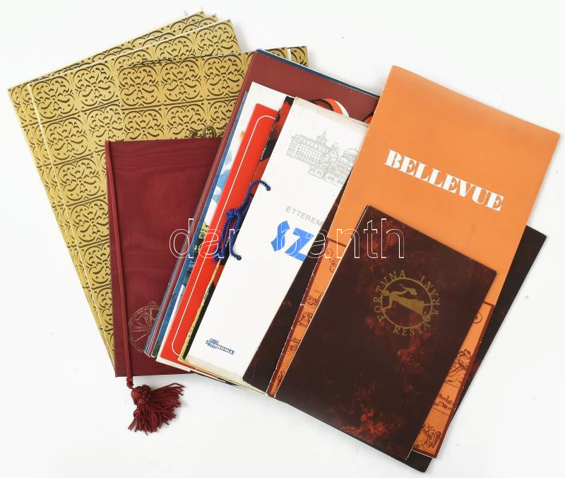 cca 1970-1980 Étlapgyűjtemény legendás budapesti és vidéki vendéglátóhelyekről, kb. 30 darabos (Pipacs bár, Kárpátia, Nefelejcs, stb.), néhány csak borító