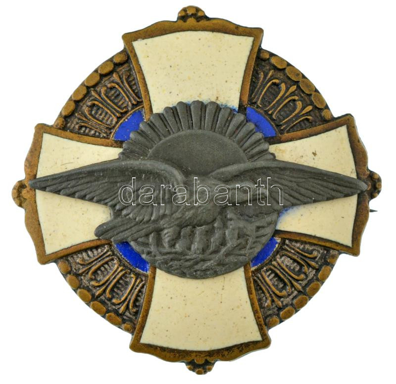 zománcozott bronz jelvény, Zn rátéttel, fehér kereszten turul, "JEROUSCHEK BPEST SEMMELWEIS U. 7." gyártói jelzéssel (36x36mm) T:AU