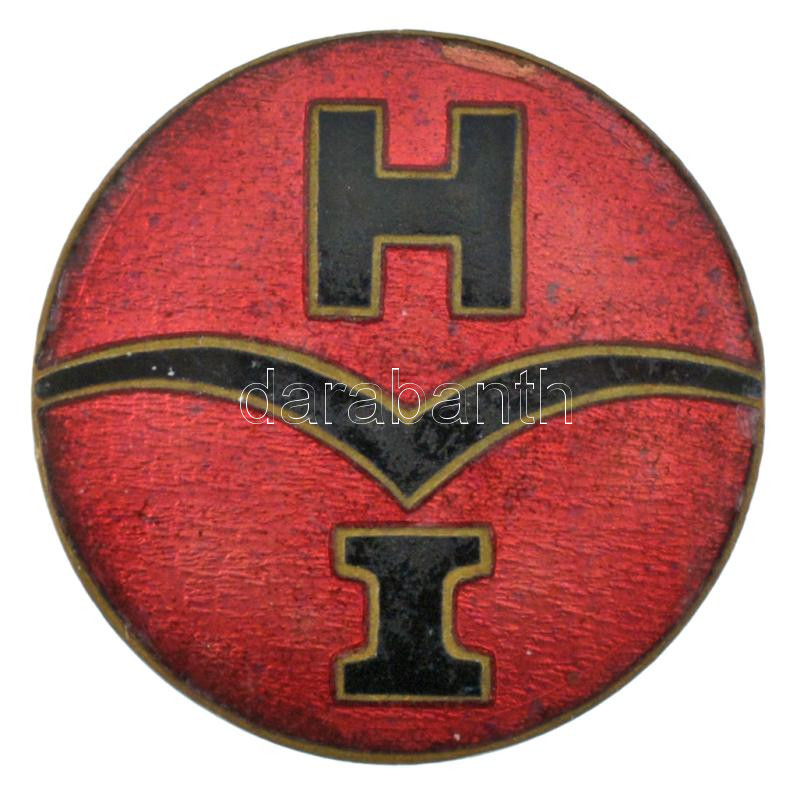 Leírás: ~1950. "H" Diósgyőri Gépgyár Hengermű (DIGÉP Hadiüzem) zománcozott tombak gyári jelvény, hátoldalán "2594" sorszámmal (29mm) T:XF zománchiba