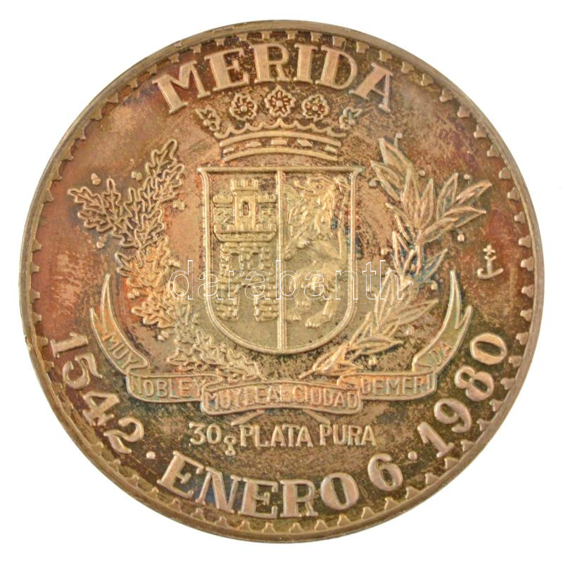 Mexico 1980. "Merida / Yucatan" double-sided, hallmarked Ag medallion in original case (30,53g/0.925/39mm) C:UNC patina