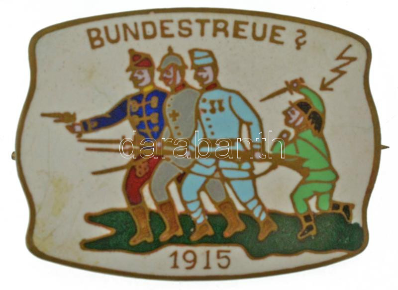 Austro-Hungarian Monarchy 1915. "Bundestreue? 1915" enamelled bronze propaganda badge without makers mark, with repaired hanger (29x38mm) C:XF enamel error