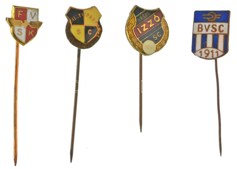 Leírás: ~1950. "Ferencvárosi Vasutas SK (FVSK)" zománcozott bronz jelvény + DN "Budapesti Vasutas SC (BVSC)" zománcozott bronz jelvény + 1951-1957. "Vasas Izzó SC" zománcozott bronz jelvény + DN "Helyiipari SC" zománcozott bronz jelvény T:AU,XF