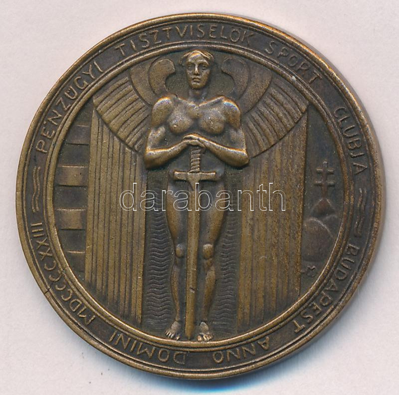 Martinelli Jenő (1886-1949) 1927. "Pénzügyi Tisztviselők Sport Clubja - Budapest anno domini MDCCCCXXIII" bronz emlékérem, hátoldalán "1927. III. 10." gravírozással (35mm) T:AU repedés