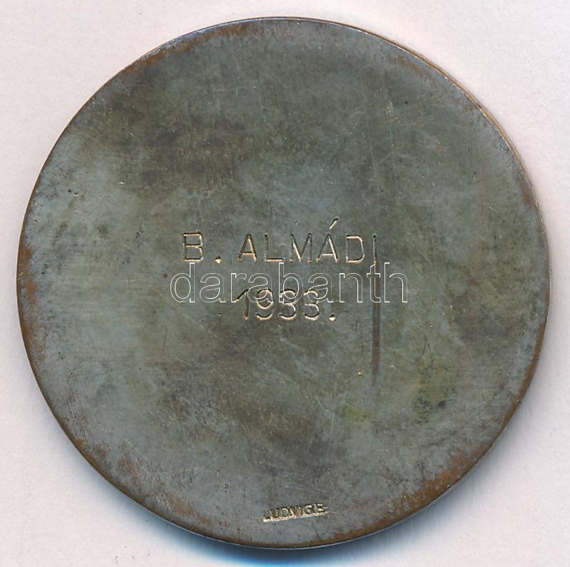 Leírás: Szalmássy István (-) 1933 "Magyar Királyi Postatakarékpénztári Tisztviselők Sportegyesülete 1903." ezüstözött bronz díjérem, hátoldalán "LUDVIG" gyártói jelzéssel és "B. Almádi 1933" gravírozással (39mm) T:XF kopott ezüstözés