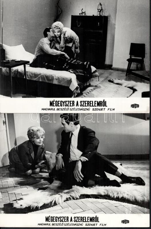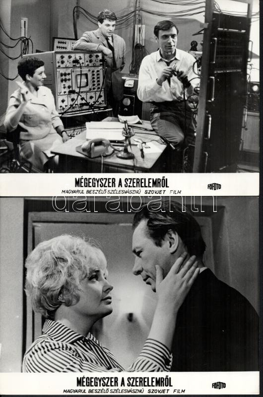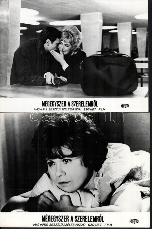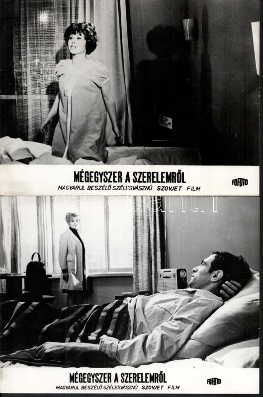 cca 1970 előtt készült ,,Még egyszer a szerelemről" című szovjet film jelenetei és szereplői, 17 db vintage produkciós filmfotó (vitrinfotó, lobbyfotó) ezüst zselatinos fotópapíron, a használatból eredő (esetleges) kisebb hibákkal, 18x24 cm